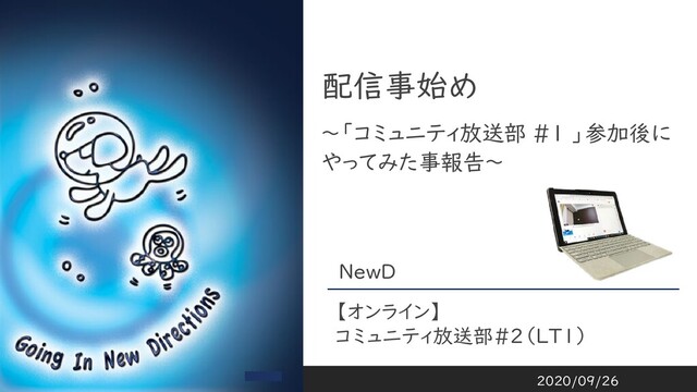 7回も同じ曲を演奏してもらったのに、 そのうち1回はPCの電源が落ちた • LTEの場合、720pは必須 D : オープンマイク♪(地上1階) 報告 【資料D-1】 1 PC Mic Action Camera Standard Wi-Fi 2 PC Mic PC Camera Standard Wi-Fi 3 PC Mic Action Camera High definition Wi-Fi (中断) 4 PC Mic Action Camera High definition Wi-Fi 5 PC Mic Action Camera High definition LTE 6 USB Mic Action Camera High definition Wi-Fi 7 USB Mic Action Camera High definition Wi-Fi コミュニティ放送部#2(LT1) 2020/09/26