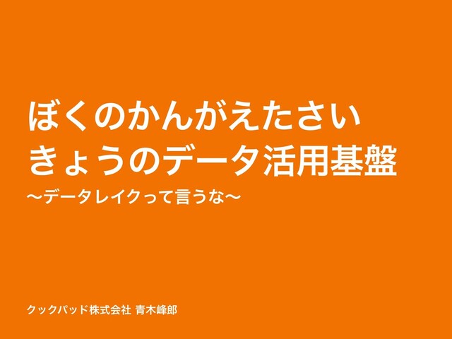 ΫοΫύουגࣜձࣾ੨ๆ ΅͘ͷ͔Μ͕͍͑ͨ͞ ͖ΐ͏ͷσʔλ׆༻ج൫ ʙσʔλϨΠΫͬͯݴ͏ͳʙ