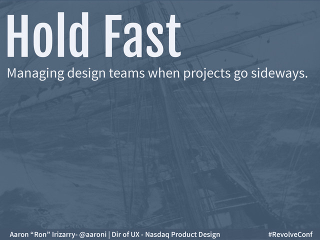 challenging project situations, if we want to be successful, and more importantly, help our teams be successful we need to lead. Aaron “Ron” Irizarry- @aaroni | Dir of UX - Nasdaq Product Design #RevolveConf