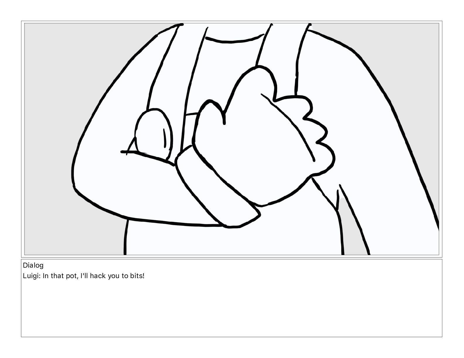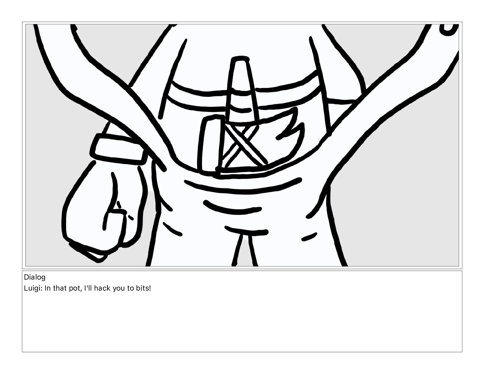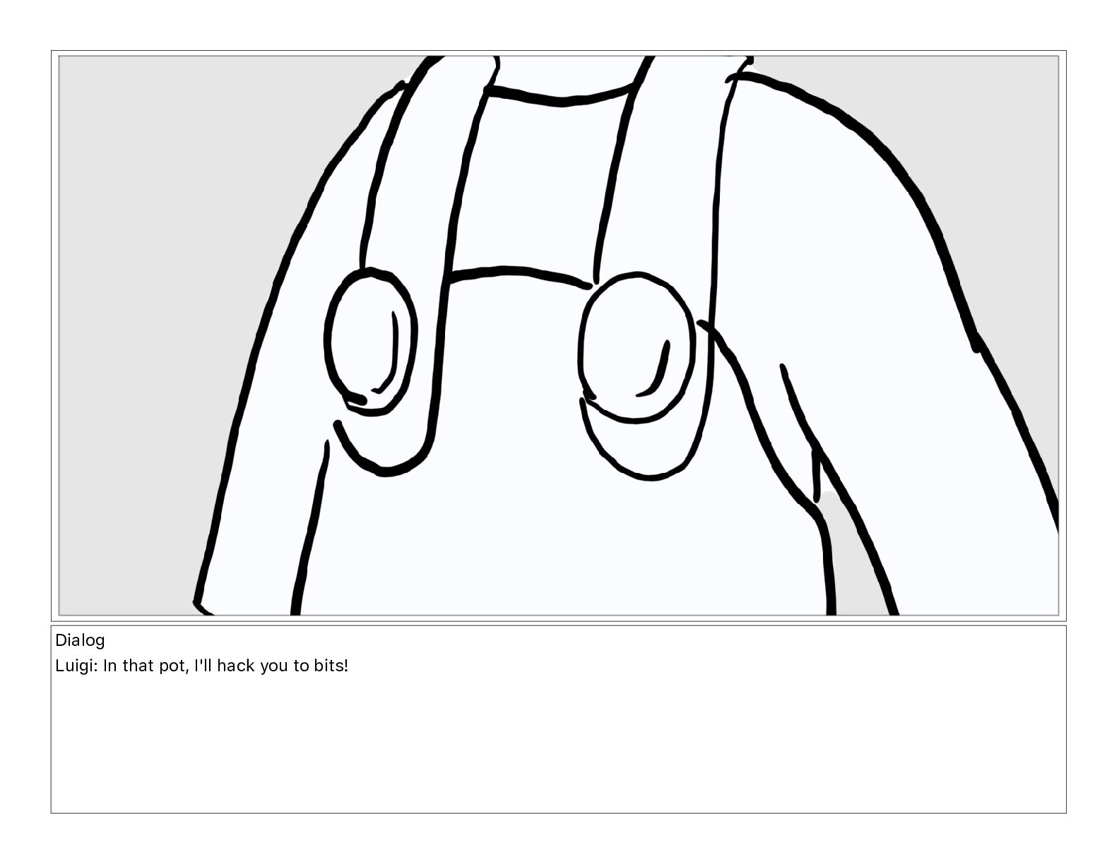 Dialog Luigi: In that pot, I'll hack you to bits!