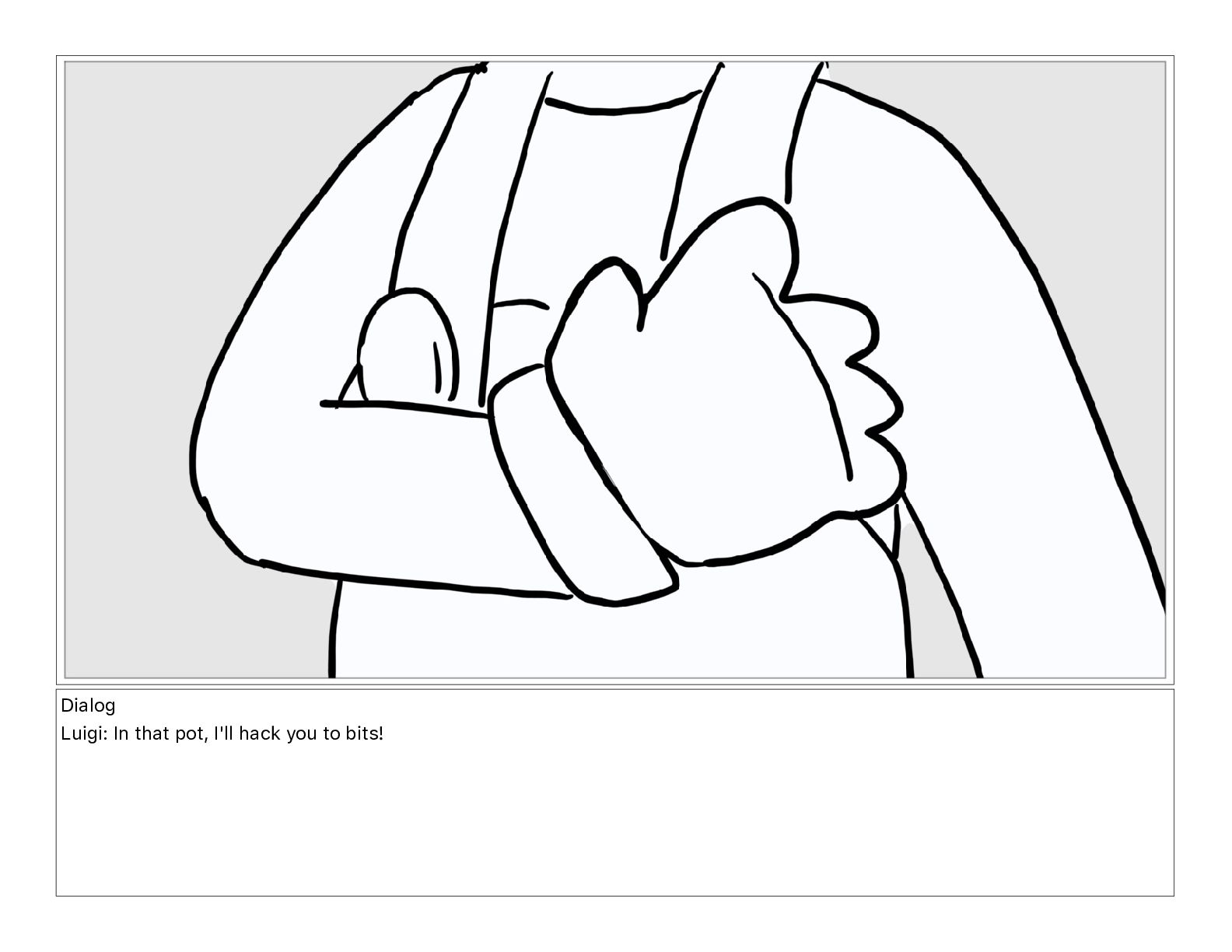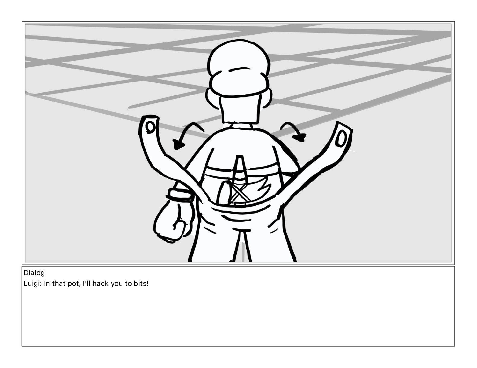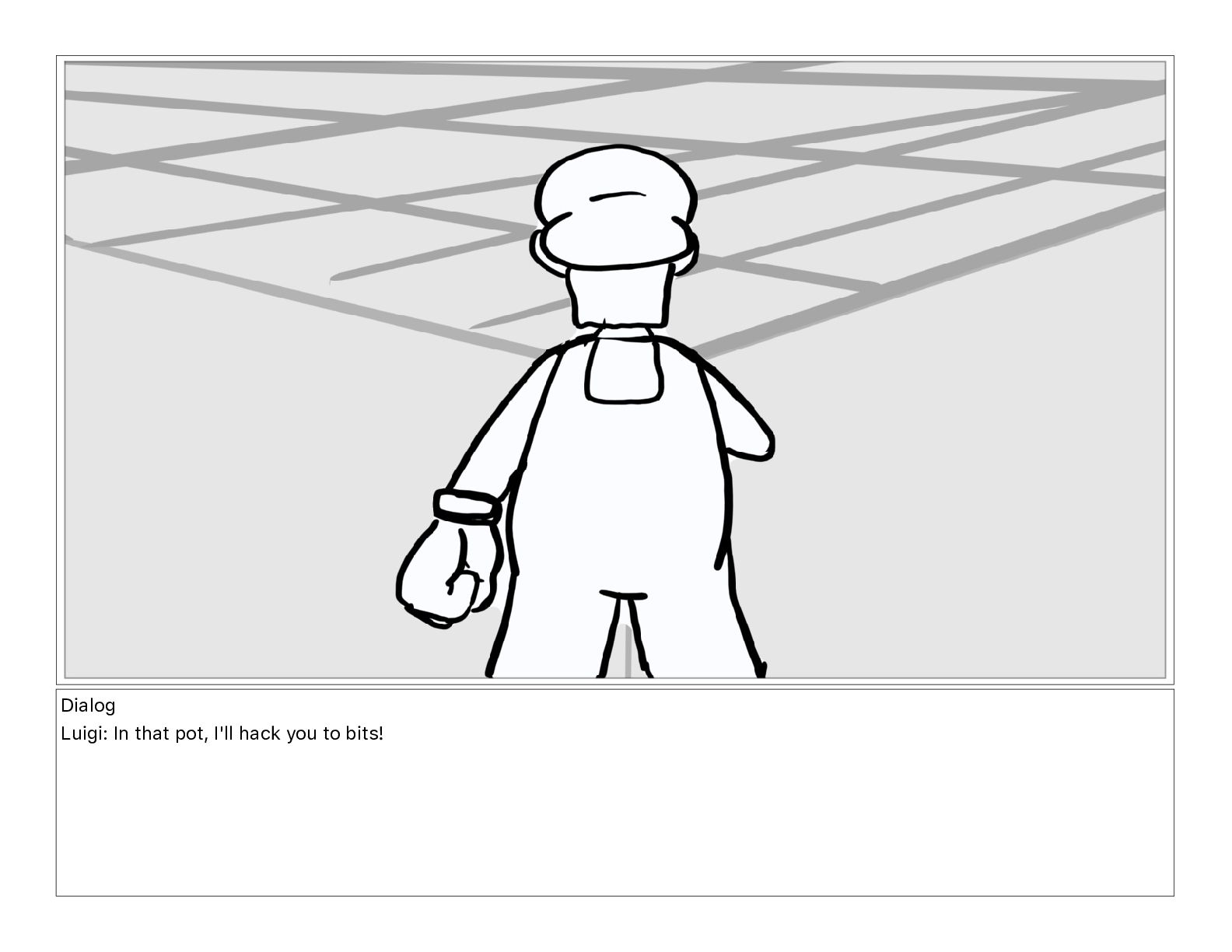 Dialog Luigi: In that pot, I'll hack you to bits!
