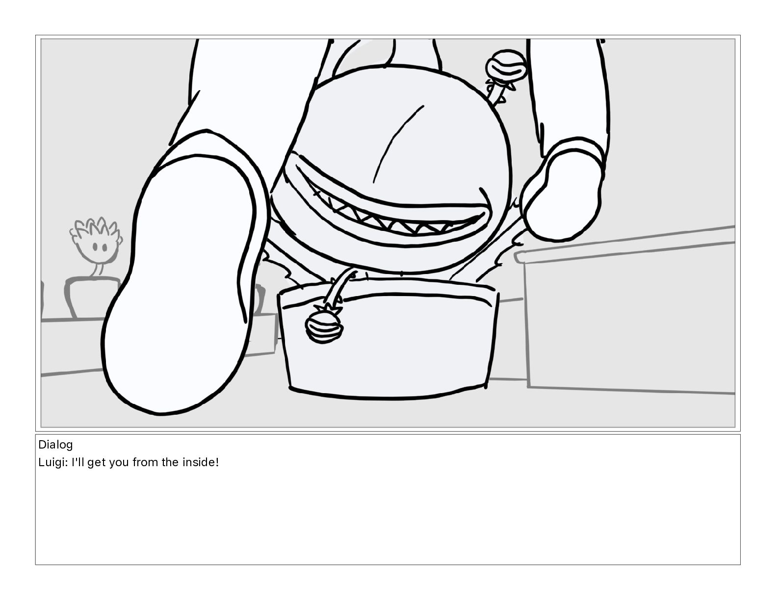 Dialog Luigi: I'll get you from the inside!