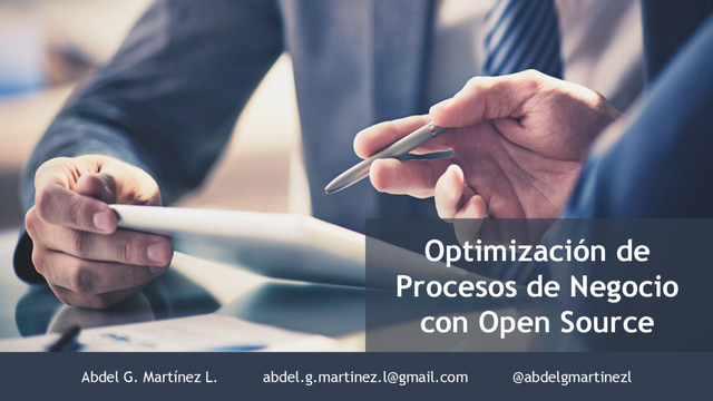 Esta presentación era para mi participación en el ciclo de conferencias de la Semana de la Ingeniería en Universidad Interamericana de Panamá. Explico un poco el contexto de cómo optimizar procesos de negocio utilizando herramientas tecnológicas de código abierto.