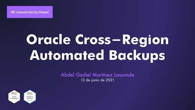 Presentación para el AWS Community Data Day, donde explico sobre Oracle Cross-Region Automated Backups, características de replicación automática de snapshots y archived redo logs de una región primaria y una región secundaria.