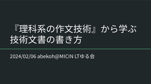 『理科系の作⽂技術』から学ぶ 技術⽂書の書き⽅ 2024/02/06 abekoh@MICIN LTゆる会