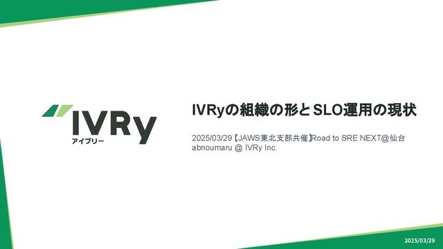 2025/03/29 IVRyの組織の形と SLO運用の現状 2025/03/29 【JAWS東北支部共催】Road to SRE NEXT@仙台 abnoumaru @