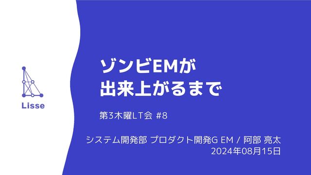 | ゾンビEMが出来上がるまで ©️ 2024 Lisse Co., Ltd. 自己紹介 名前 阿部
