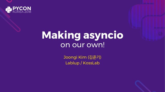 PEP 380 – Syntax for Delegating to a Subgenerator § PEP 492 – Coroutines with async and await syntax § PEP-3156 – Asynchronous IO Support Rebooted: the "asyncio" Module § Jonas Obrist's "Artisanal Asyncio Adventures" Talks § CPython's asyncio module source code on GitHub § curio (https://github.com/dabeaz/curio) § trio (https://github.com/python-trio/trio) PyCon KR 2018