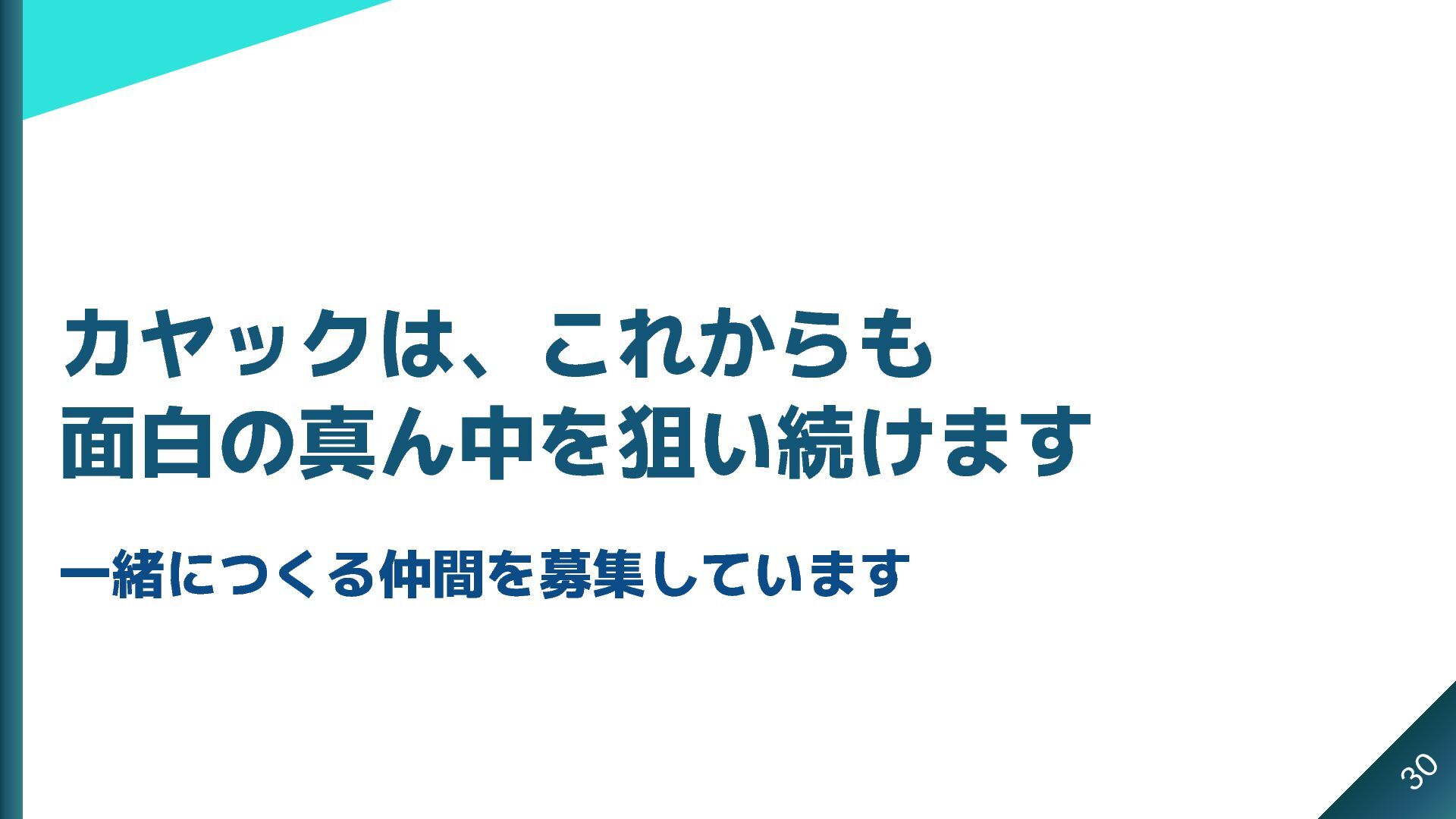 カヤックは、これからも 面白の真ん中を狙い続けます 一緒につくる仲間を募集しています 30
