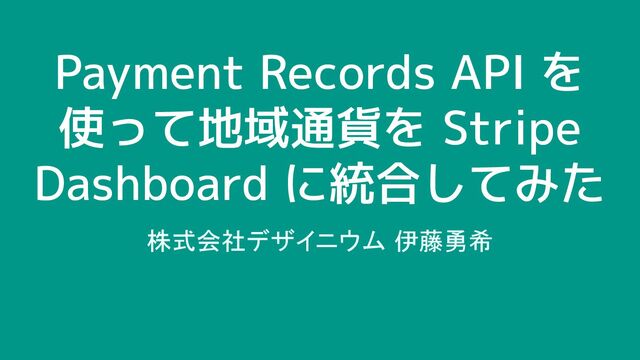 Payment Records API を 使って地域通貨を Stripe Dashboard に統合してみた 株式会社デザイニウム 伊藤勇希
