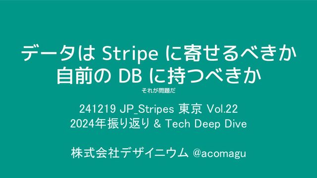 データは Stripe に寄せるべきか 自前の DB に持つべきか それが問題だ 241219 JP_Stripes 東京