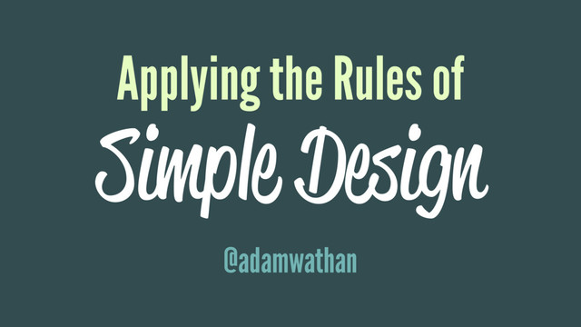 This talk is about taking a step back and thinking about what really makes your code good. Using Kent Beck's four simple rules, I'll teach you how to get unstuck and stop worrying about the future by embracing emergent design and writing great code now.