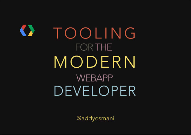 A talk about improving developer workflow. Learn about new experimental features in the Chrome Developer Tools, brand new features in text editors, command line tools, live reload, Yeoman and more.