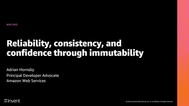 rights reserved. Reliability, consistency, and confidence through immutability Adrian Hornsby Principal Developer Advocate Amazon Web Services A R C 3 0 3