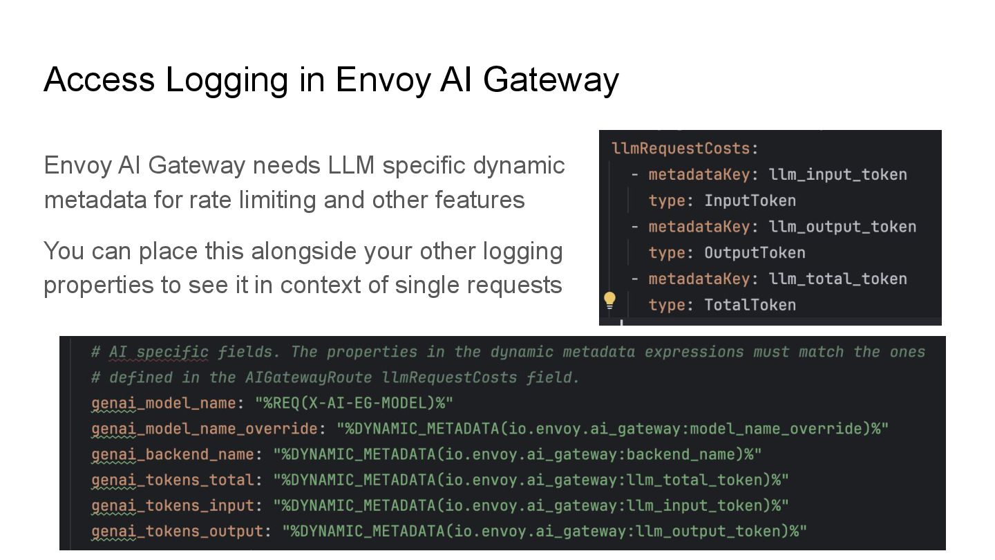 limiting and other features You can place this alongside your other logging properties to see it in context of single requests Access Logging in Envoy AI Gateway