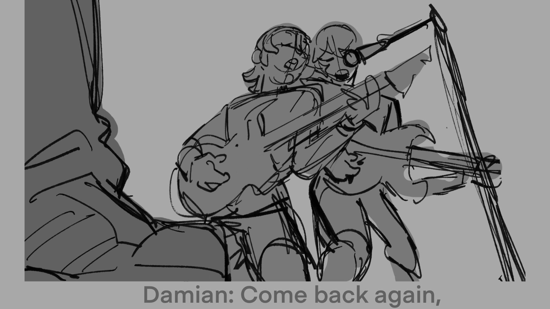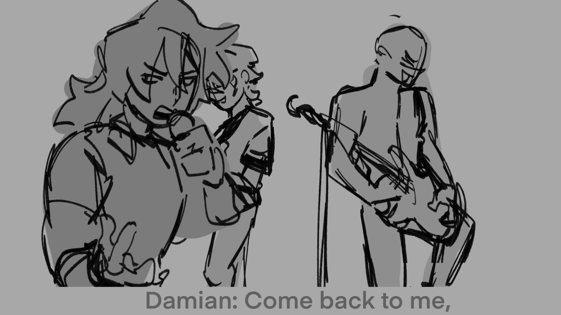 Boards for my characters in a heavy metal band. In this board, they are playing Almost Easy by Avenged Sevenfold at a concert.