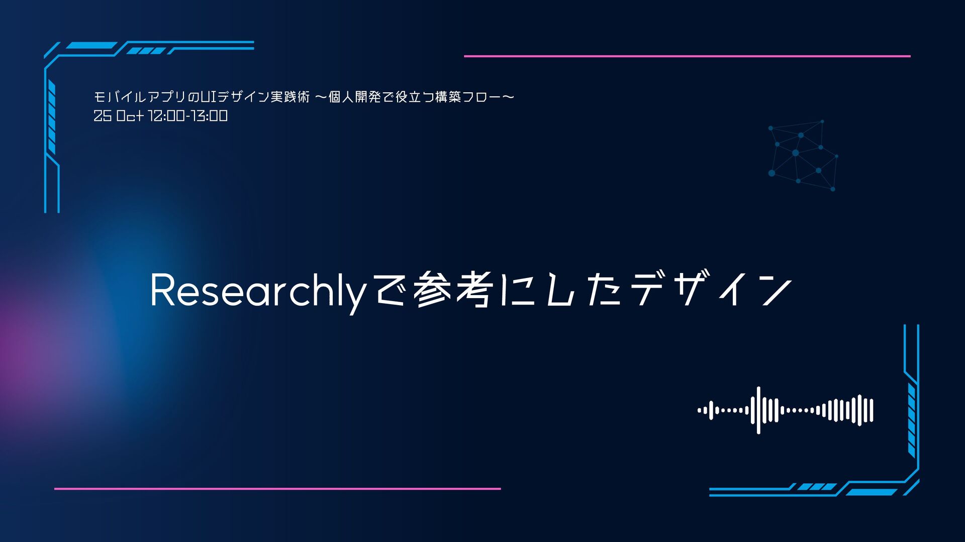 モバイルアプリのUIデザイン実践術 ~個人開発で役立つ構築フロー〜 Researchlyで参考にしたデザイン 25 Oct 12:00-13:00