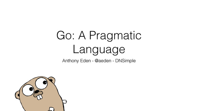 When I first looked at Go, the open source programming language developed at Google, I was unimpressed. Then I used it. Now I find Go to be a solid and useful tool in my toolchest of languages. In this talk I'll introduce Go, its syntax, how you might use it. I'll talk about its strengths and weaknesses and give you code examples demonstrating some of its finer points. I will also show you some examples of how we use Go within DNSimple, in production. So join me for an intro to the world of Go, and learn about how to use this pragmatic language to solve your programming challenges.