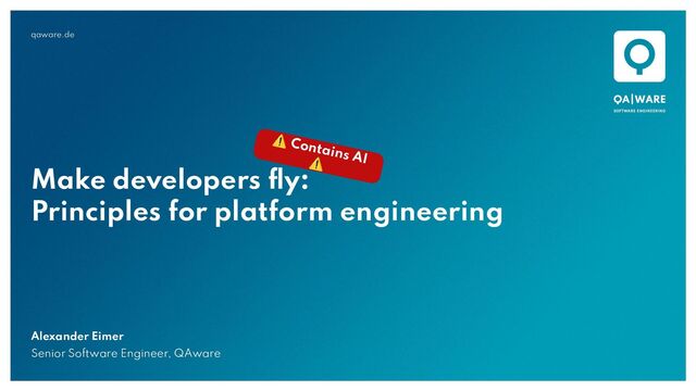 of crashing miserably? The answer is Platform Engineering, a discipline for building internal developer platforms (IDPs) to simplify software delivery for product teams. In this talk, you'll learn how Platform Engineering evolved from the DevOps movement and what principles and best practices make for a good implementation. After that, we'll take a look at reference architectures that can support your platform. Beside that, we will discuss the usage of AI platforms and how it helps to accelerate LLMs and RAG company-wide. 54 QAware