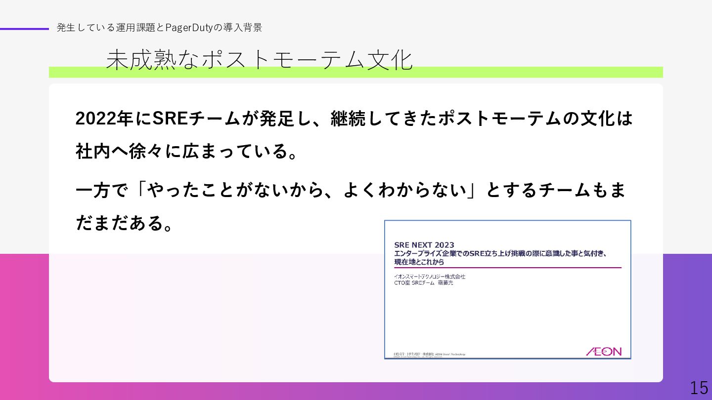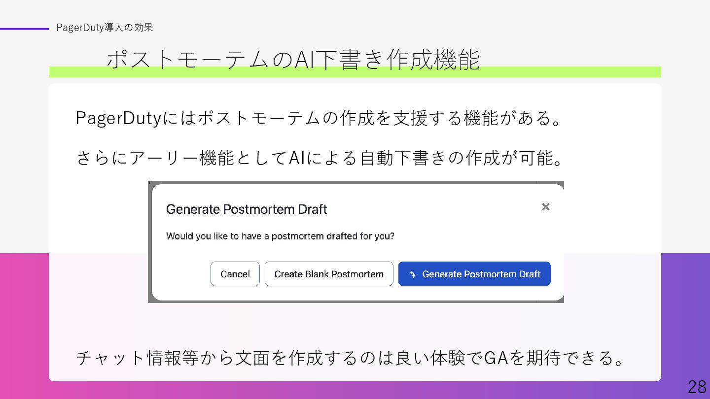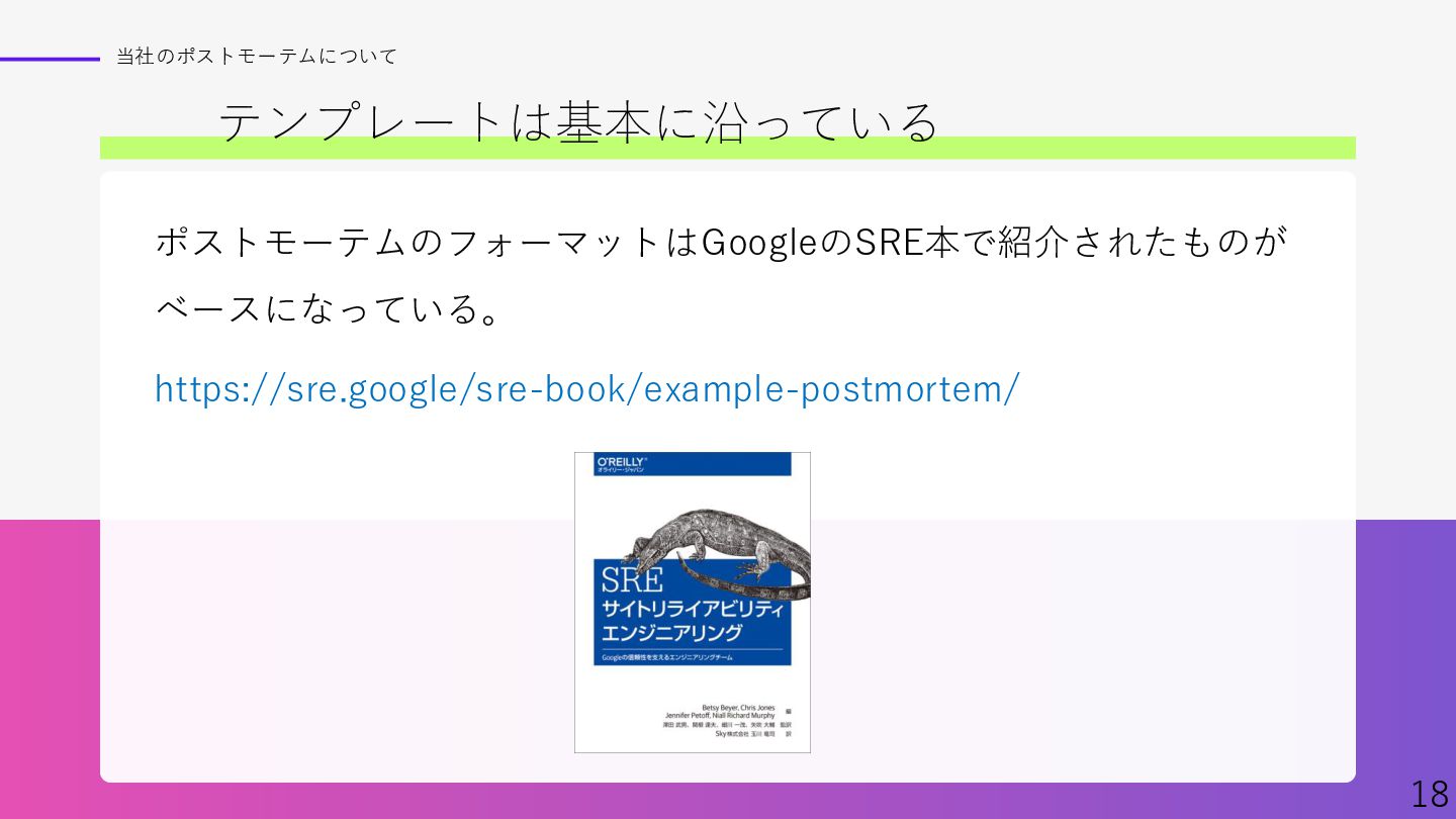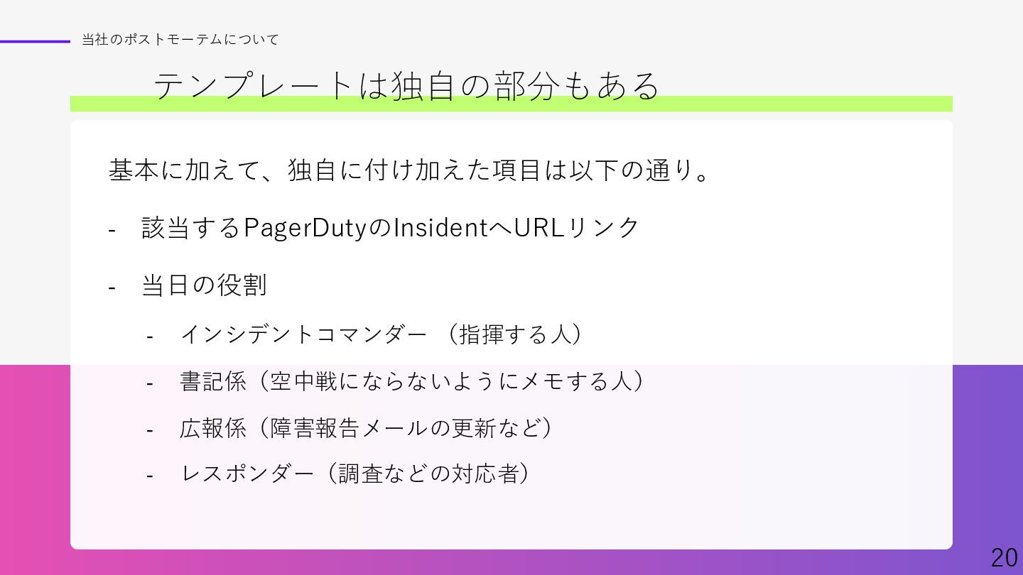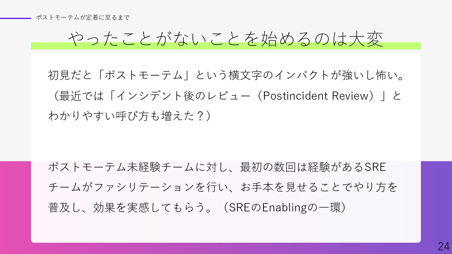 Findyさん主催イベント、「ポストモーテムを実践へ ─学びを組織に定着させるには─」での資料です。