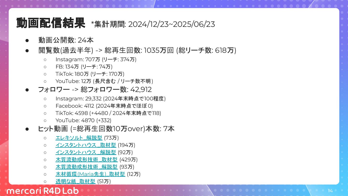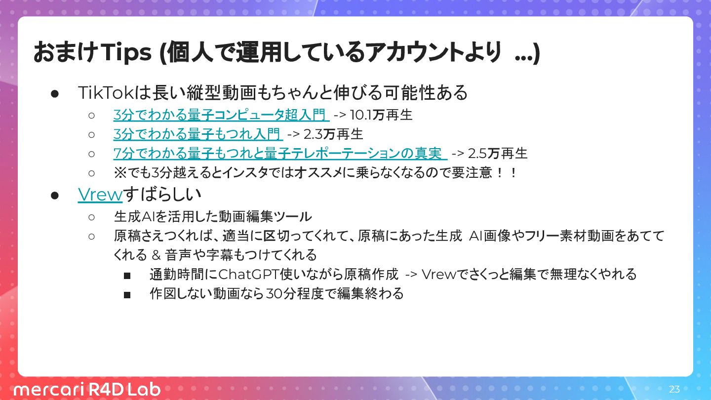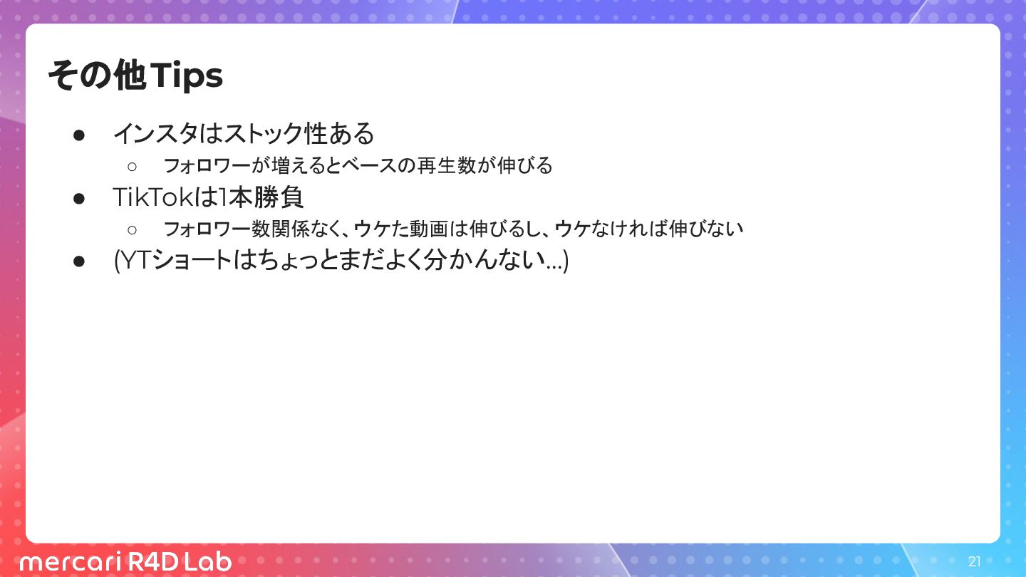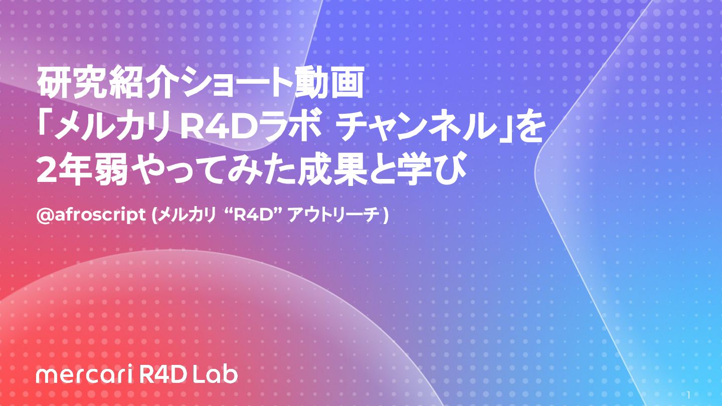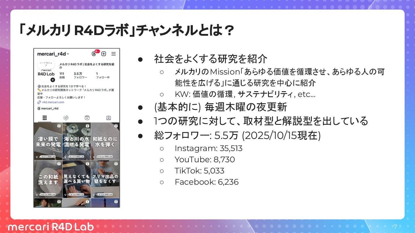 FYI: メルカリR4Dラボチャンネル * https://www.instagram.com/mercari_r4d/ * https://www.youtube.com/@mercari_r4d * https://www.tiktok.com/@mercari_r4d