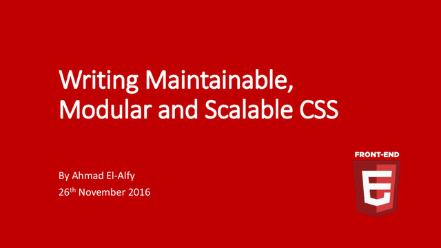 Session given in the 2nd Front-end Egypt meetup on 26th of November 2016. Discussing the common methodologies followed to write CSS that can easily be maintained and scame without troubles.