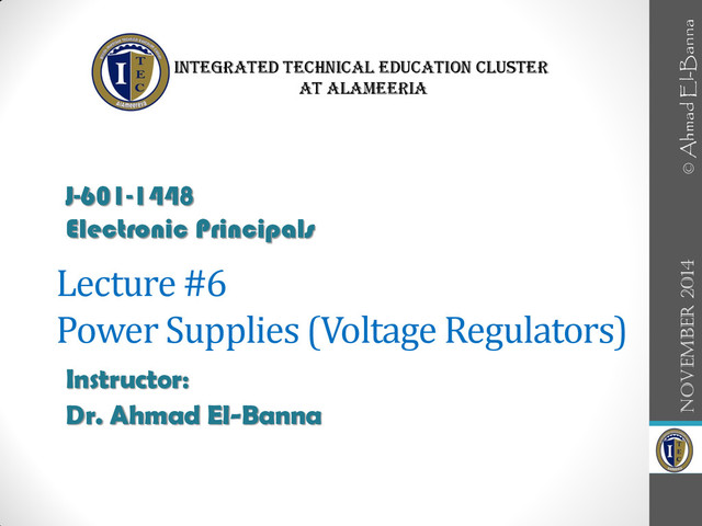 November 2014 J-601-1448 Electronic Principals Integrated Technical Education Cluster At AlAmeeria © Ahmad El-Banna