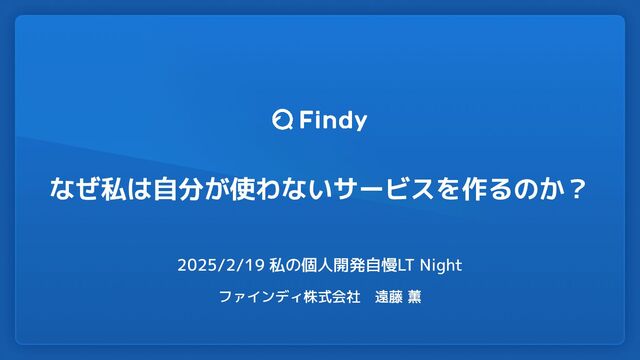 なぜ私は自分が使わないサービスを作るのか? 2025/2/19 私の個人開発自慢LT Night ファインディ株式会社 遠藤 薫