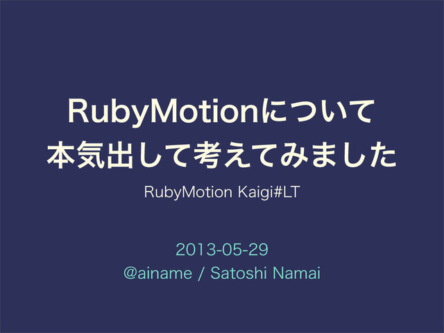 RubyMotionについて本気出して考えてみました