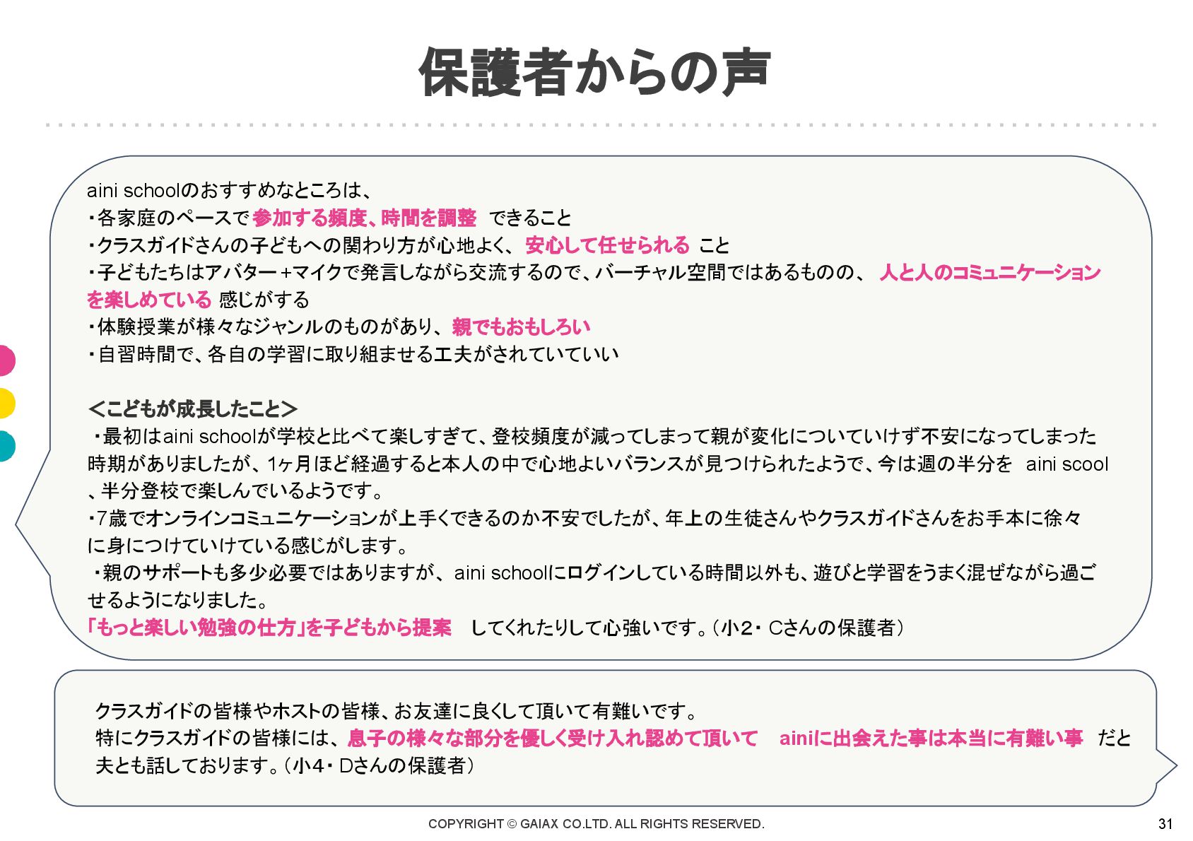 21. COPYRIGHT © GAIAX CO.LTD. ALL RIGHTS RESERVED. 31 保護者からの声 aini
