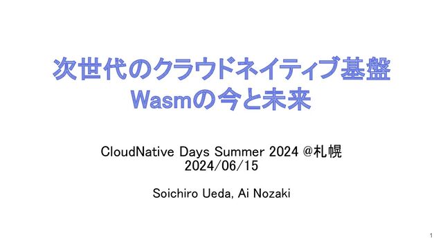 次世代のクラウドネイティブ基盤 Wasmの今と未来 CloudNative Days Summer 2024 @札幌 2024/06/15 Soichiro