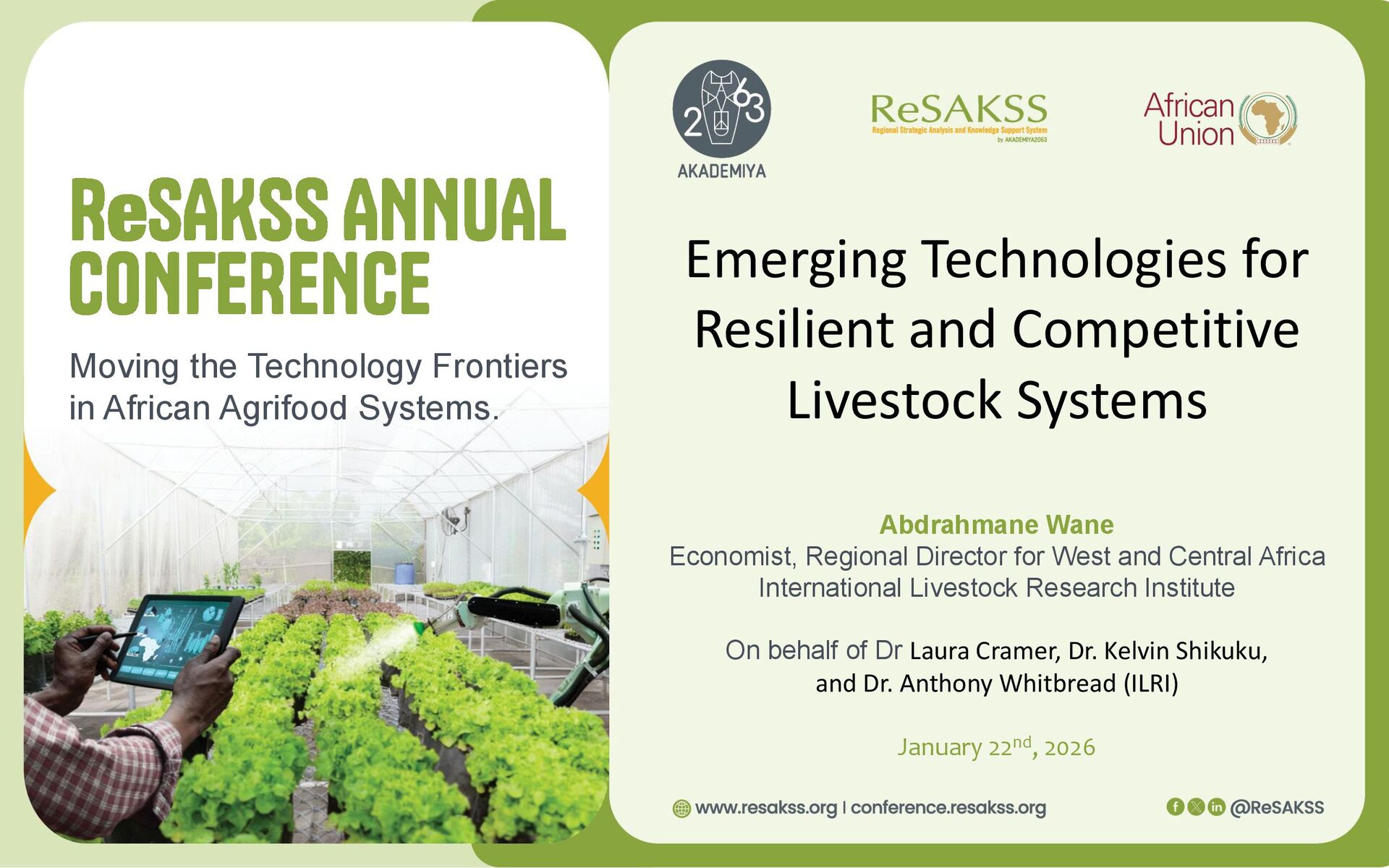 Emerging Technologies for Resilient and Competitive Livestock Systems Abdrahmane Wane Economist, Regional Director for West and Central Africa International Livestock Research Institute On behalf of Dr Laura Cramer, Dr. Kelvin Shikuku, and Dr. Anthony Whitbread (ILRI) January 22nd, 2026