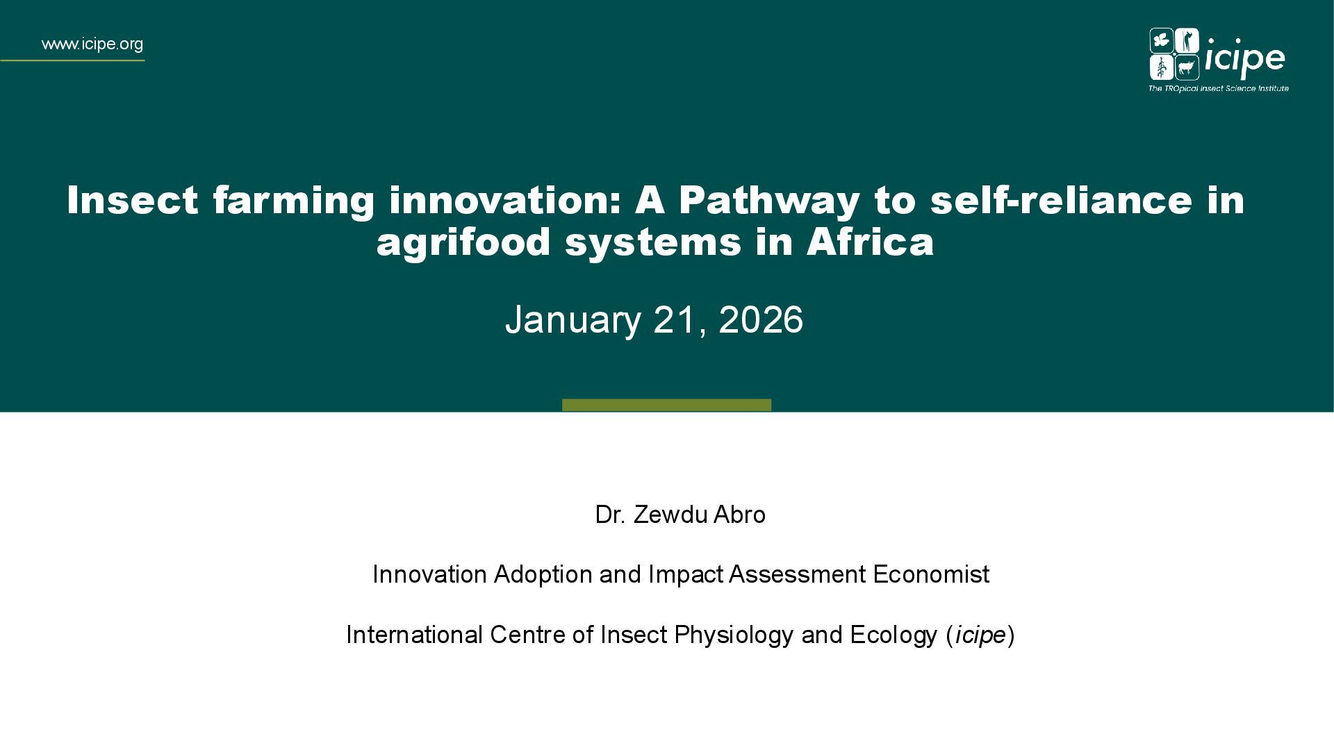 1. www.icipe.org January 21, 2026 Insect farming innovation: A Pathway to