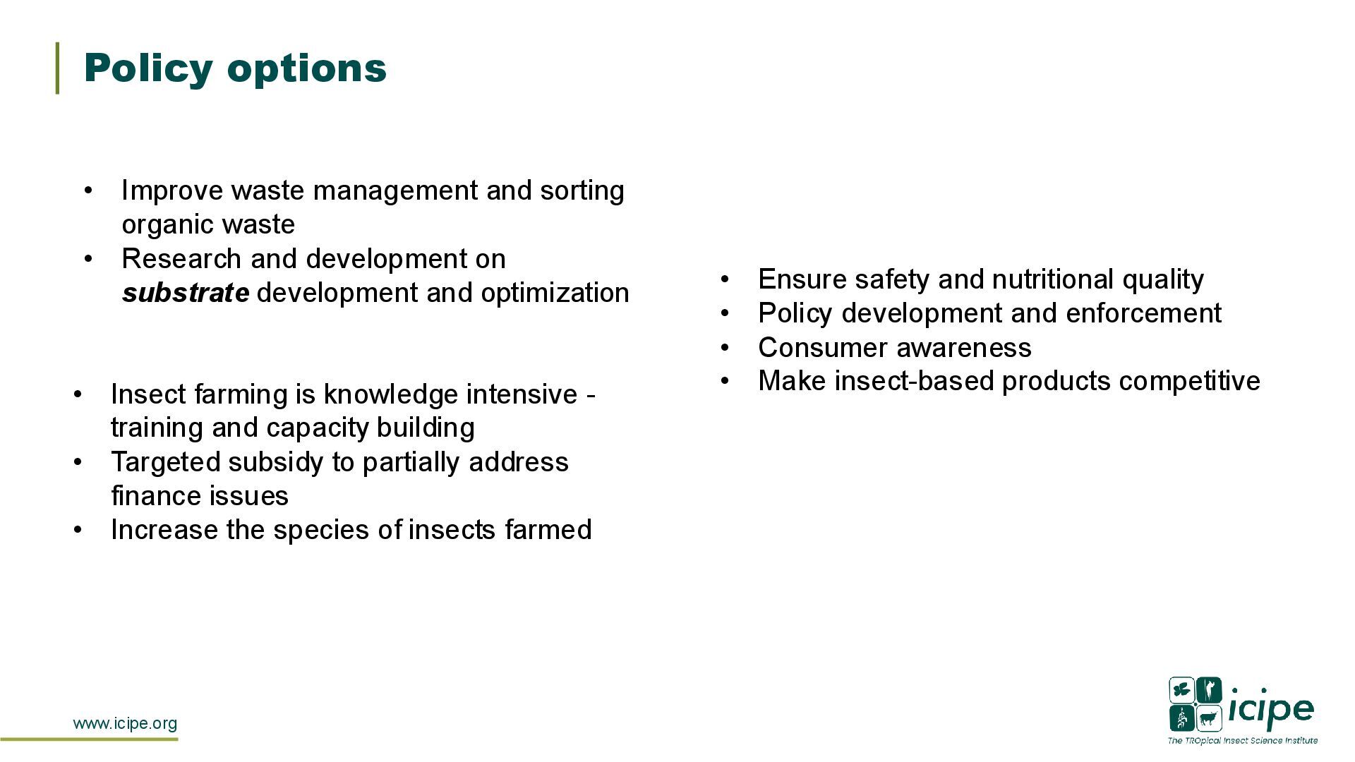 8. www.icipe.org Policy options • Improve waste management and sorting organic