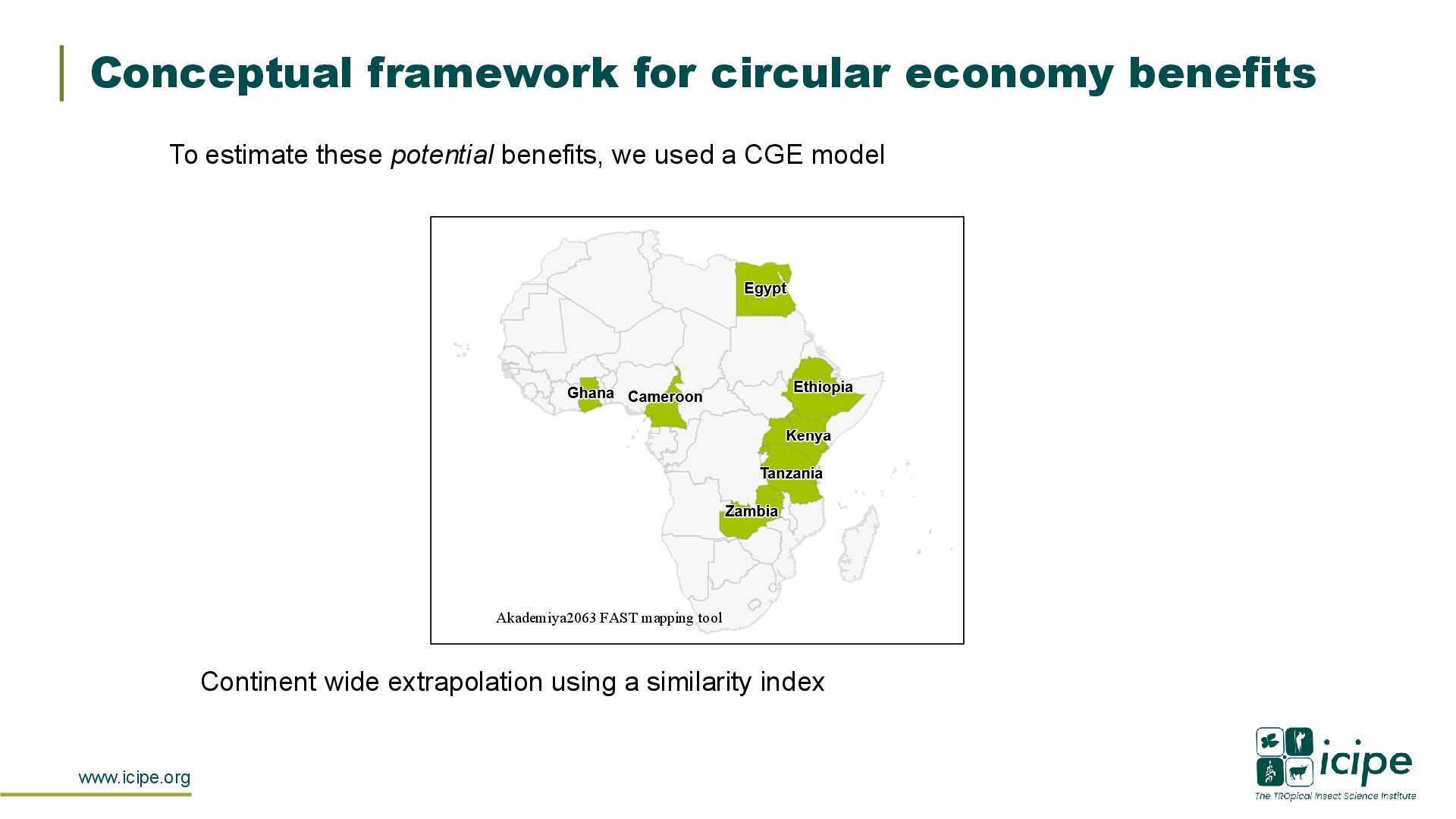 potential benefits, we used a CGE model Akademiya2063 FAST mapping tool Continent wide extrapolation using a similarity index