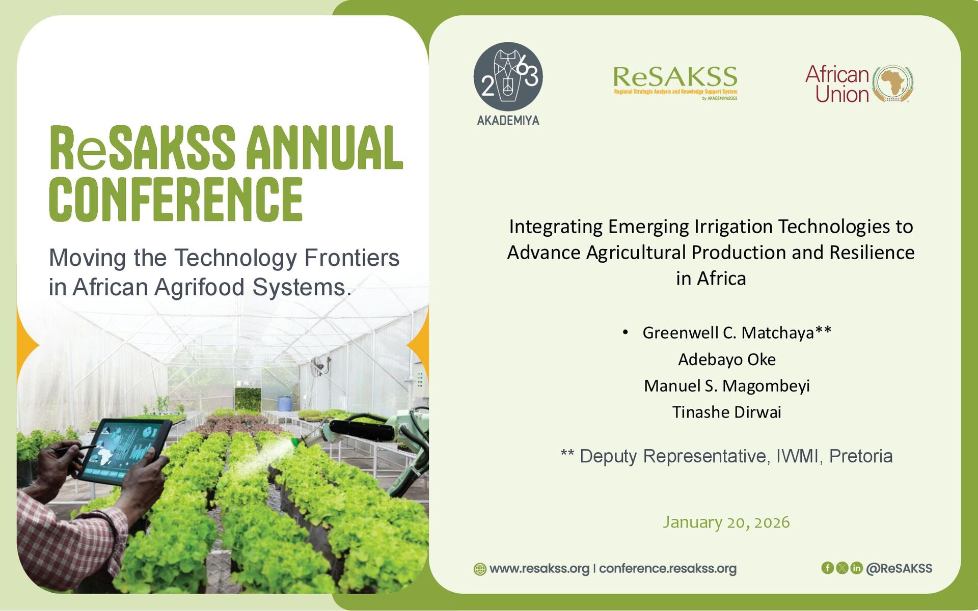 Integrating Emerging Irrigation Technologies to Advance Agricultural Production and Resilience in Africa • Greenwell C. Matchaya** Adebayo Oke Manuel S. Magombeyi Tinashe Dirwai ** Deputy Representative, IWMI, Pretoria January 20, 2026