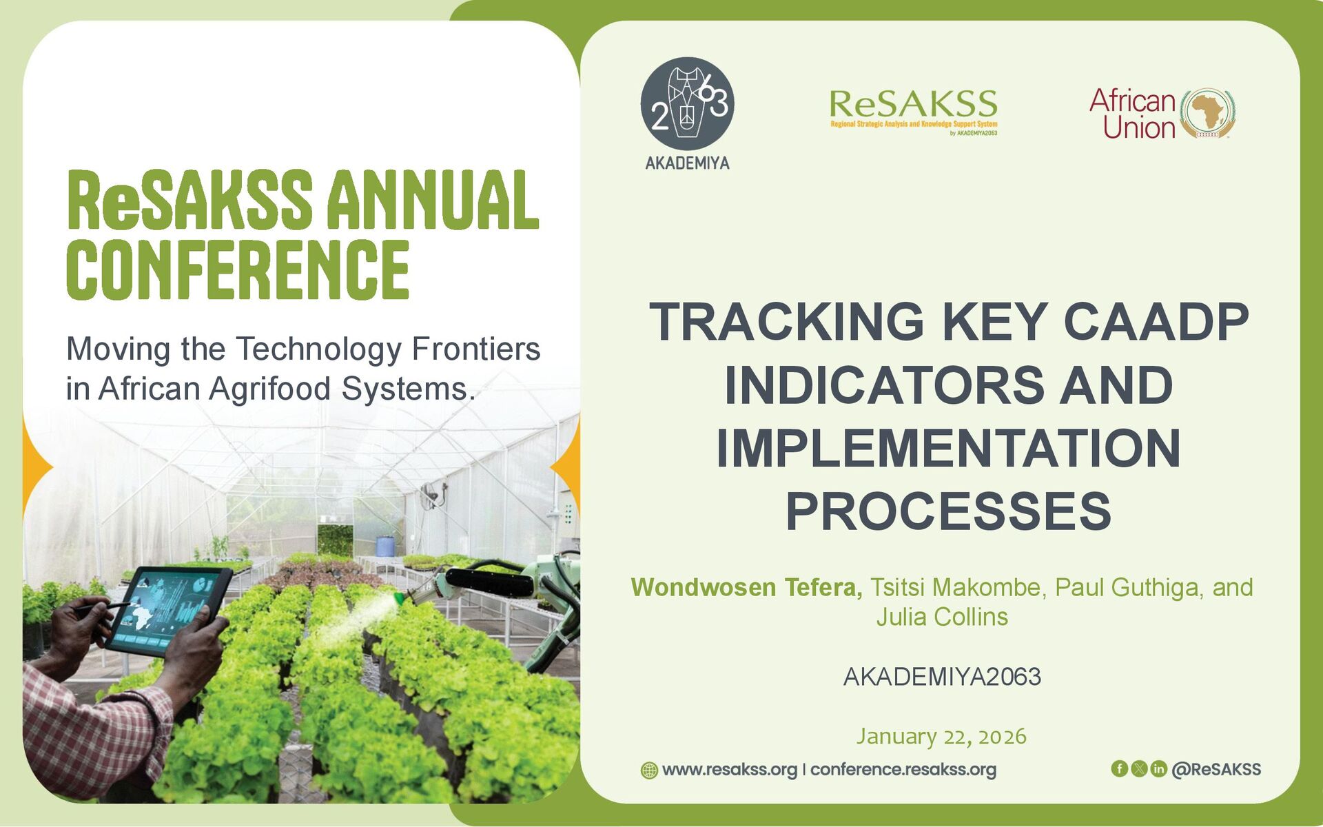 Systems. TRACKING KEY CAADP INDICATORS AND IMPLEMENTATION PROCESSES Wondwosen Tefera, Tsitsi Makombe, Paul Guthiga, and Julia Collins AKADEMIYA2063 January 22, 2026
