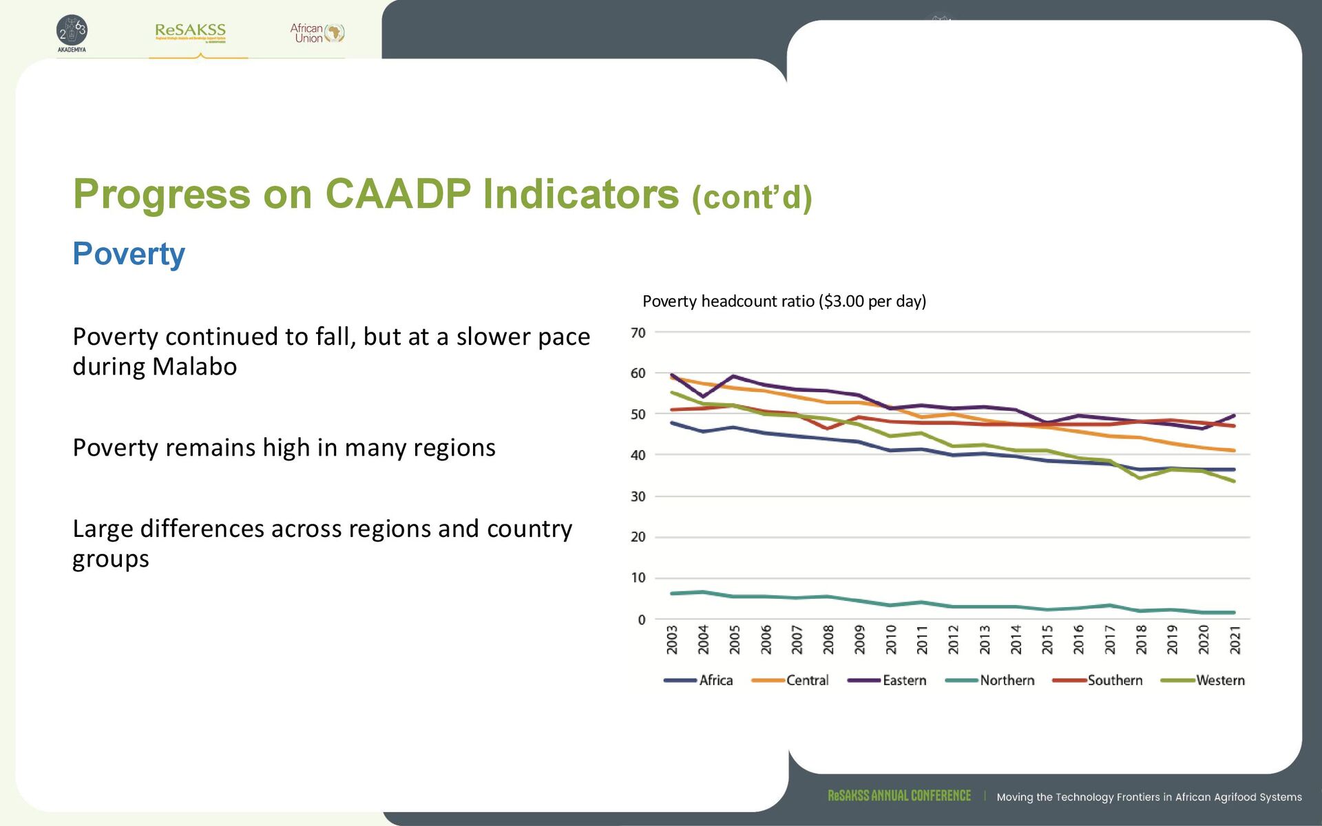 at a slower pace during Malabo Poverty remains high in many regions Large differences across regions and country groups Poverty Poverty headcount ratio ($3.00 per day)