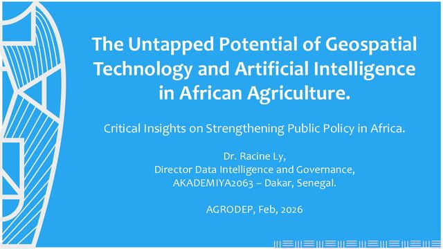 African Agriculture. Critical Insights on Strengthening Public Policy in Africa. Dr. Racine Ly, Director Data Intelligence and Governance, AKADEMIYA2063 – Dakar, Senegal. AGRODEP, Feb, 2026