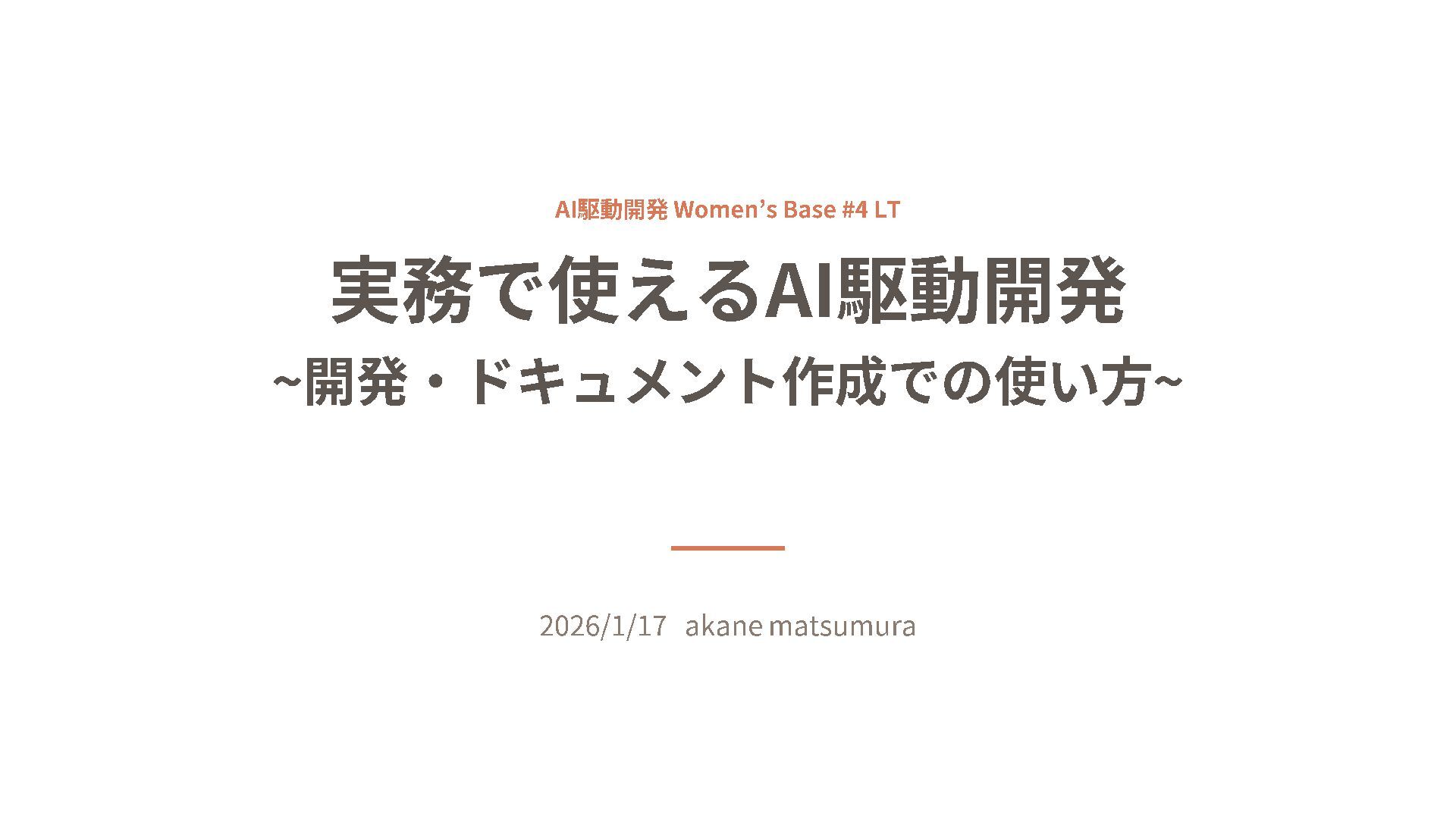 AI駆動開発 Women’s Base #4 LT 実務で使える AI駆動開発 ~ 開発・ドキュメント作成での使い方 ~