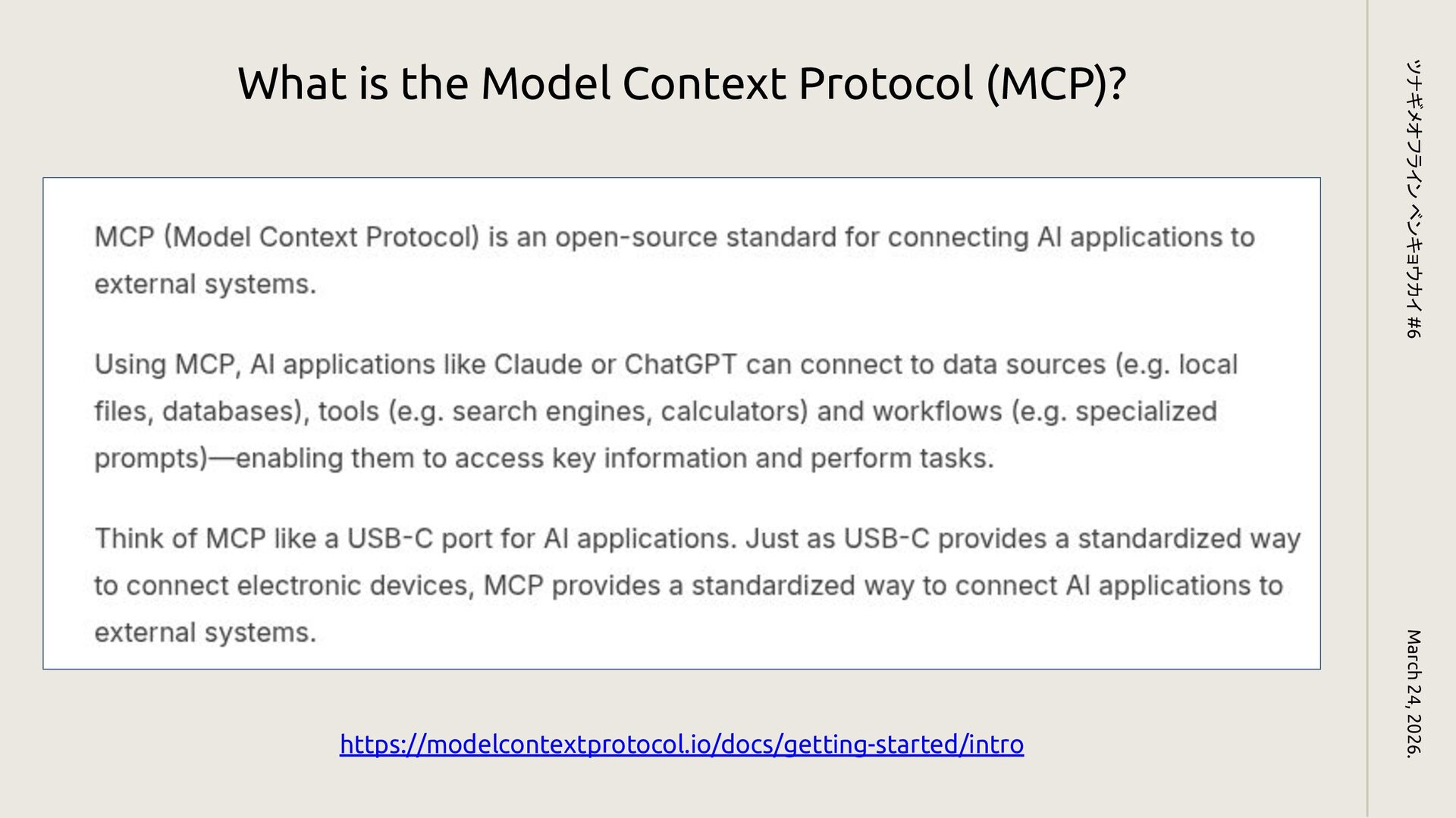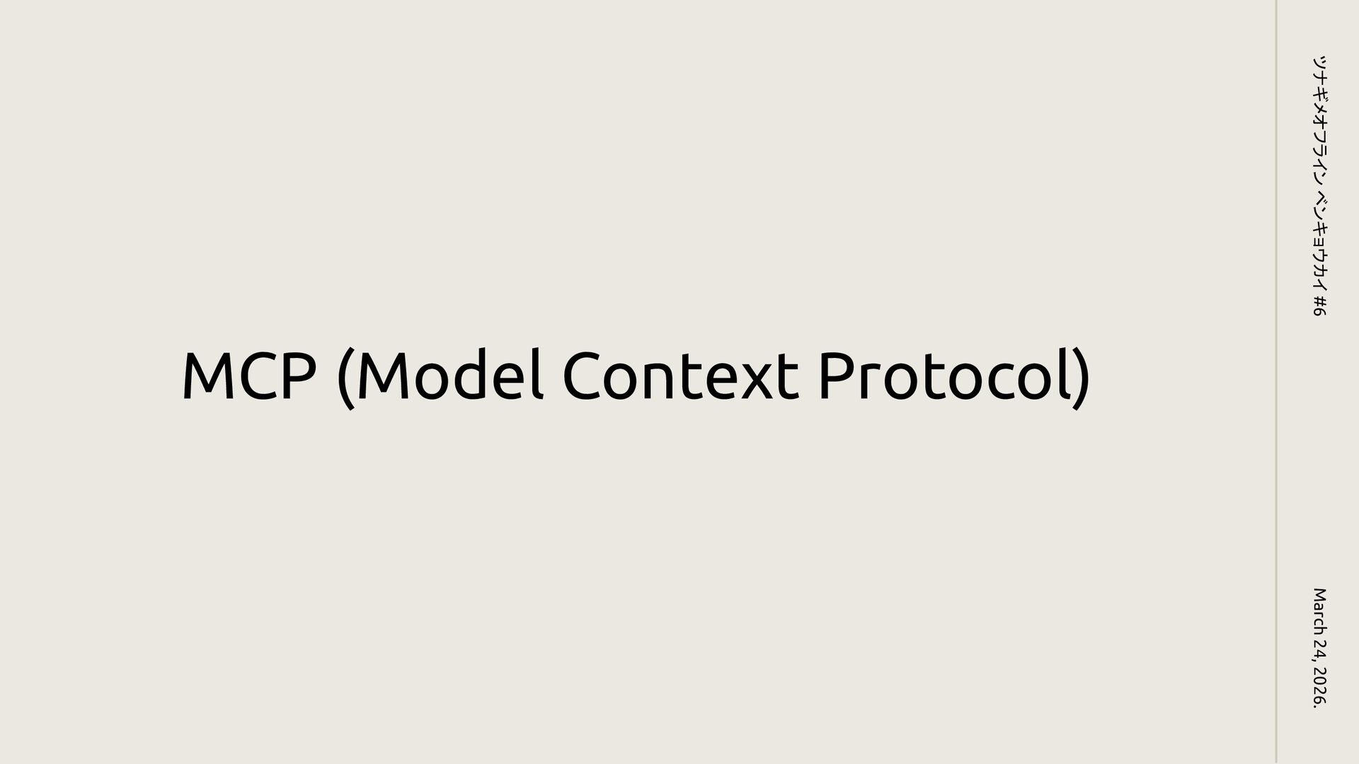 MCP (Model Context Protocol) March 24, 2026. ツナギメオフライン ベンキョウカイ #6