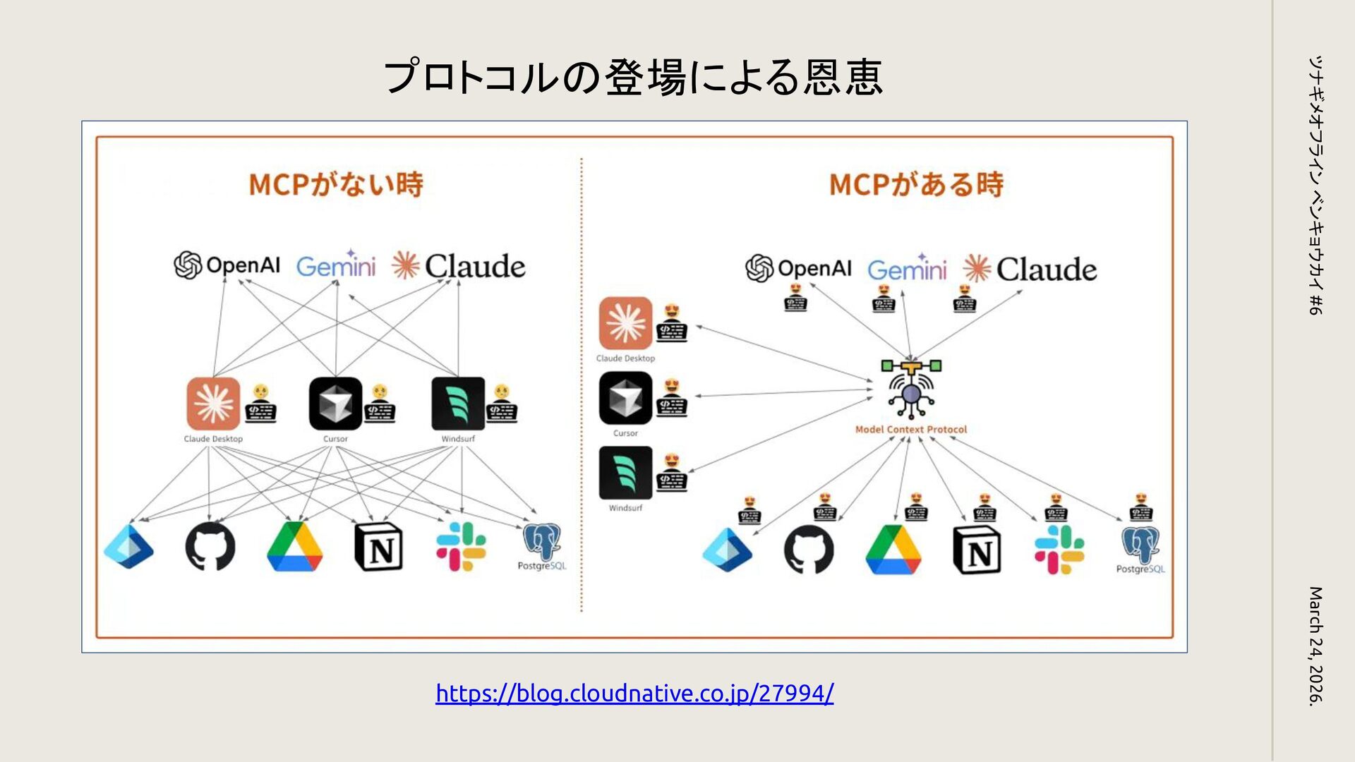 March 24, 2026. ツナギメオフライン ベンキョウカイ #6 https://blog.cloudnative.co.jp/27994/ プロトコルの登場による恩恵