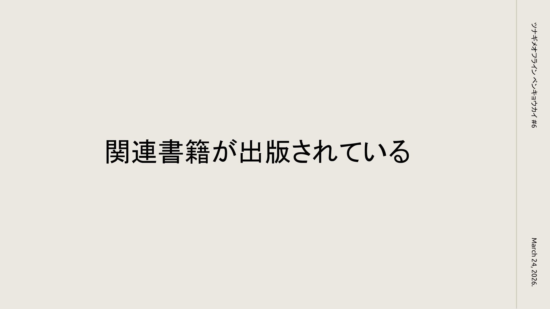 関連書籍が出版されている March 24, 2026. ツナギメオフライン ベンキョウカイ #6