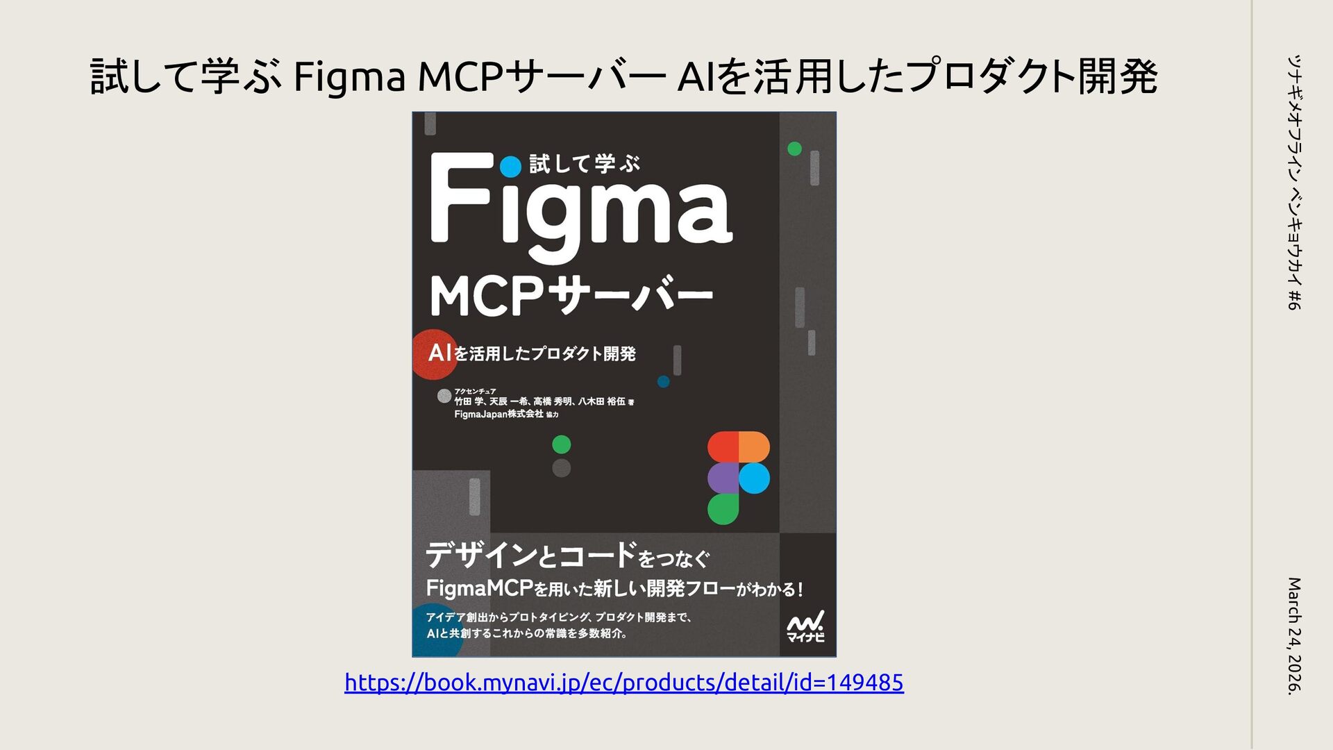 March 24, 2026. ツナギメオフライン ベンキョウカイ #6 https://book.mynavi.jp/ec/products/detail/id=149485 試して学ぶ Figma MCPサーバー