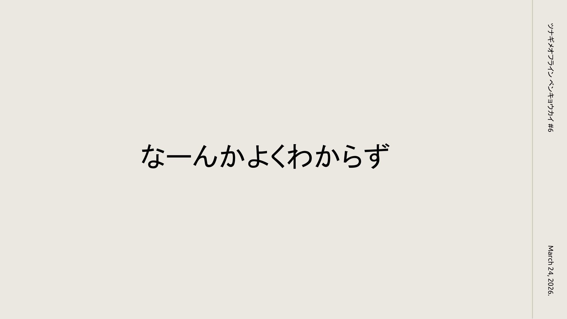 なーんかよくわからず March 24, 2026. ツナギメオフライン ベンキョウカイ #6
