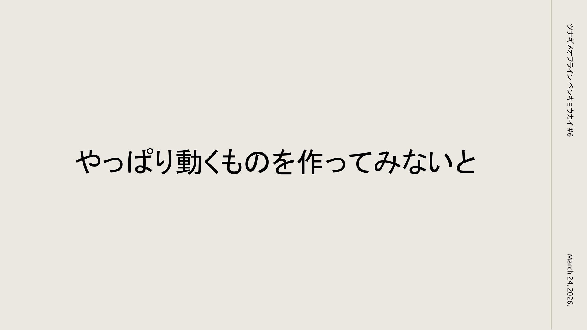 やっぱり動くものを作ってみないと March 24, 2026. ツナギメオフライン ベンキョウカイ #6