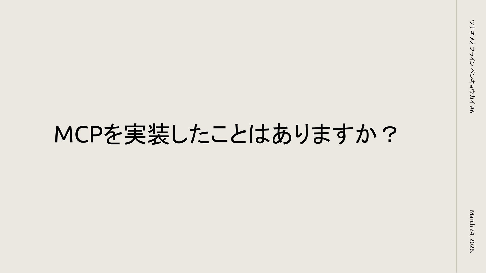 MCPを実装したことはありますか? March 24, 2026. ツナギメオフライン ベンキョウカイ #6