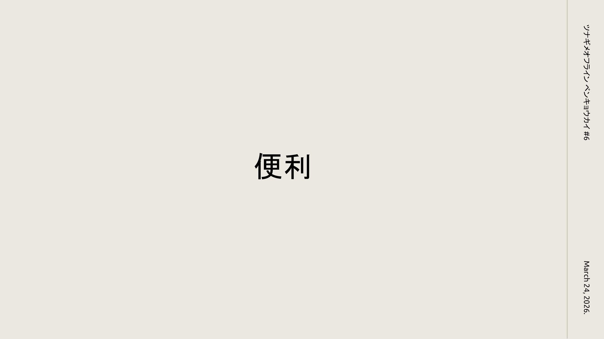 便利 March 24, 2026. ツナギメオフライン ベンキョウカイ #6