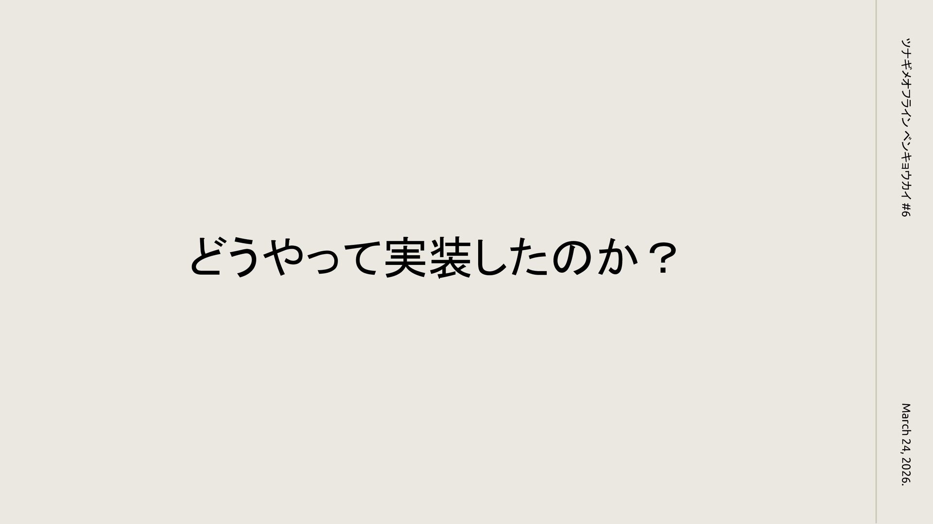 どうやって実装したのか? March 24, 2026. ツナギメオフライン ベンキョウカイ #6