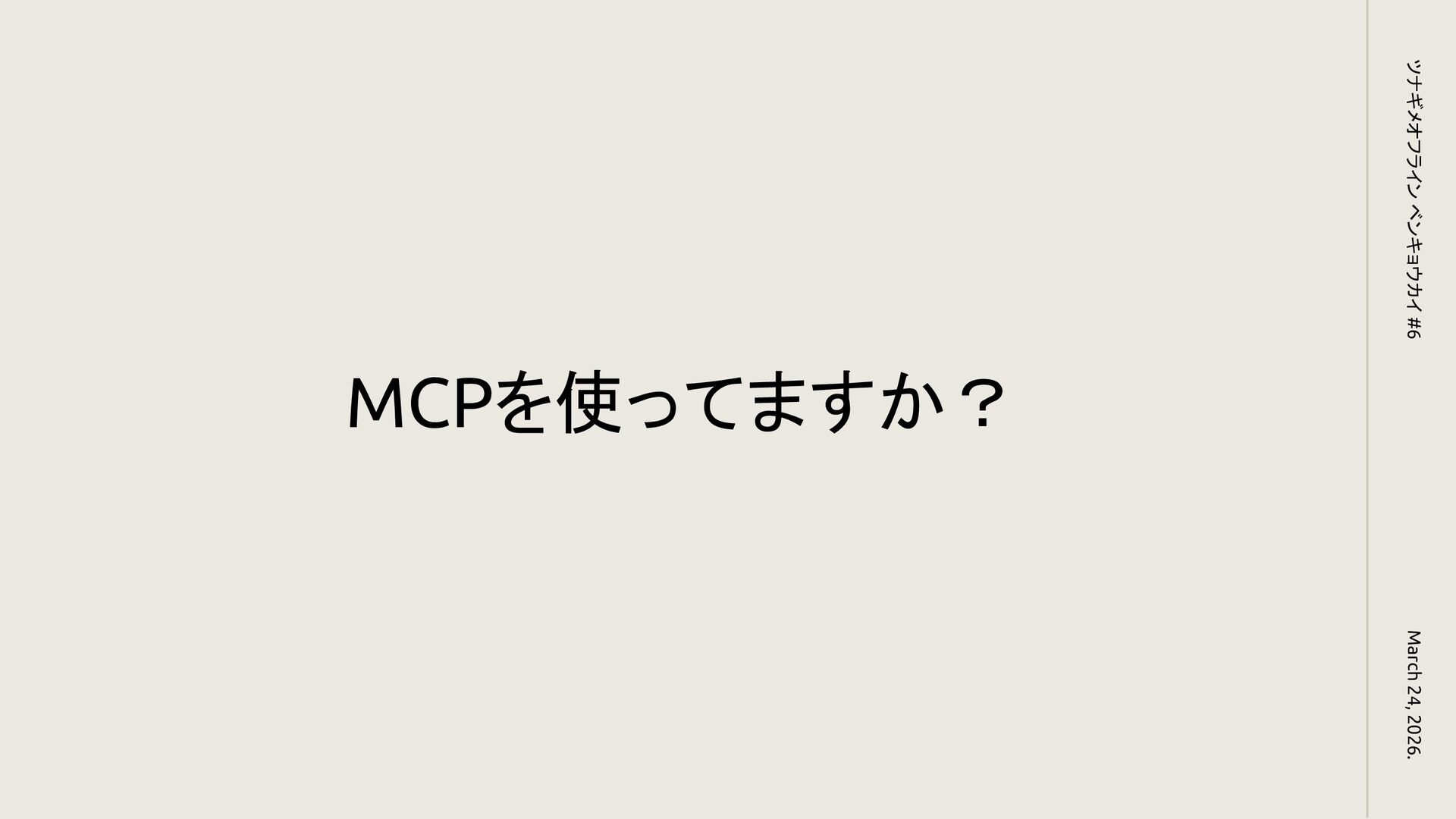 MCPを使ってますか? March 24, 2026. ツナギメオフライン ベンキョウカイ #6
